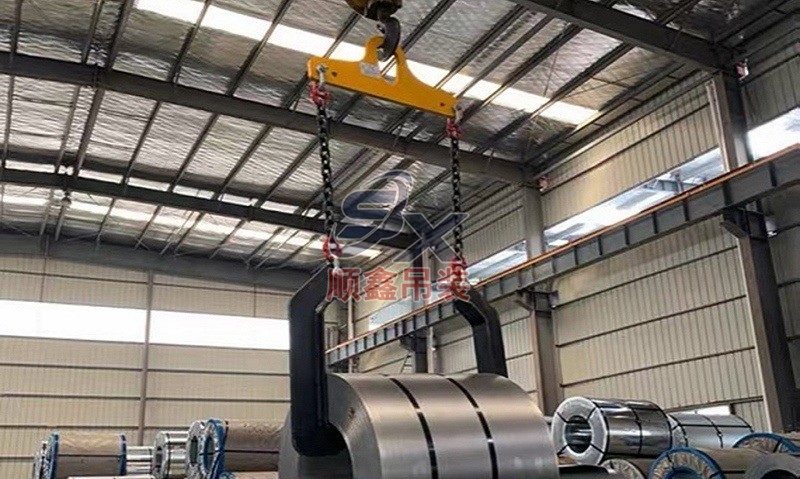 翻轉(zhuǎn)吊具通過機(jī)械剪力原理,對(duì)立式擺放的卷鋼進(jìn)行單邊抓取,來完成卷鋼的裝卸,當(dāng)改變重力點(diǎn)時(shí),可以對(duì)卷鋼進(jìn)行翻轉(zhuǎn),作業(yè)時(shí)不傷鋼卷。其吊耳采用加厚處理,焊縫飽滿牢固、延長(zhǎng)使用壽命。